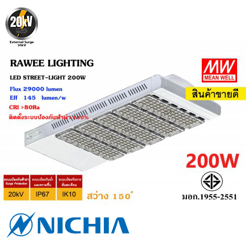 โคมไฟถนน ( LED Street Light ) ” โคมไฟถนน LED ” การันตีความมั่นใจในคุณภาพ อุปกรณ์ครบชุดพร้อมติดตั้งในทันที ตัวโคม ไฟถนน ผลิตจากวัสดุอุปกรณ์ที่มีคุณภาพดีเยี่ยม แข็งแรงทนทาน ป้องกันน้ำได้รอบทิศทาง มั่นใจได้ในเรื่องของความปลอดภัย ดีไซน์ที่สวยงามสะท้อนรูปทรงที่เป็นเอกลักษณ์ทันสมัย