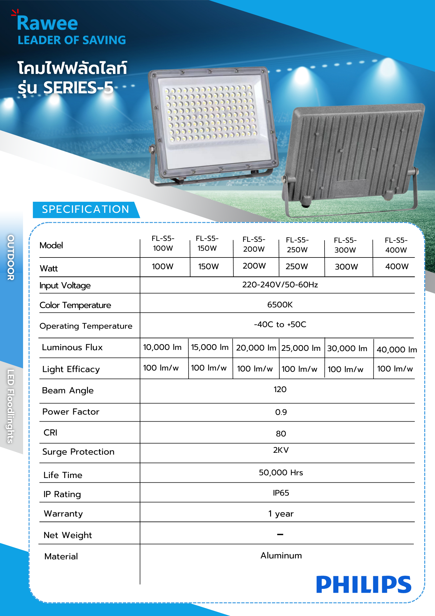 โคมฟลัดไลท์ LED RAWEE LIGHTING SERIES-5 100W