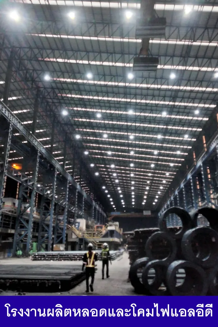 ผลงานติดต้ังโคมไฟไฮเบย์ LED SERIES-1 แสงขาว สำหรับโรงงานผลิตเหล็ก บมจ.เหล็กทรัพย์ จังหวัดลพบุรี